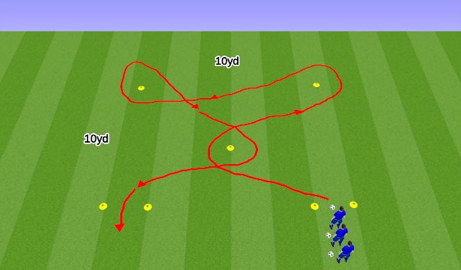 6. Progression: To increase difficulty reduce the length between cones to 5 yds instead of 10 yds.