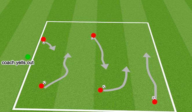 Coaching points- dribbles fast and slow, cutting, speed, head up, spatial awareness,