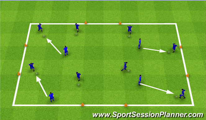 1. Each attacking player attempts to keep possession of their ball inside the area for as long as possible