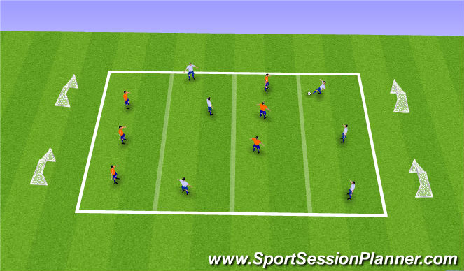 Technical passing practice with the tactical concept of using width and depth and tactical actions such as Give and Go.