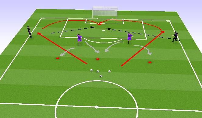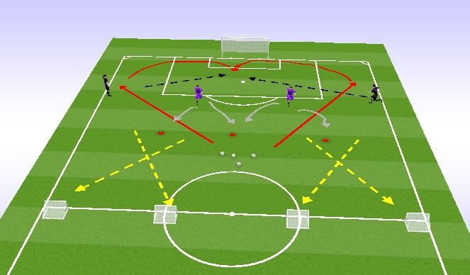 Añadimos Balon con la mano detras de cono y dependiendo de por donde driblen al cono tienen que anotar en diferente porteria