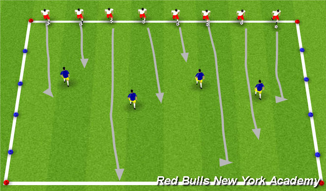 Instructions: -The Attackers must try and dribble their ball to the opposite line.