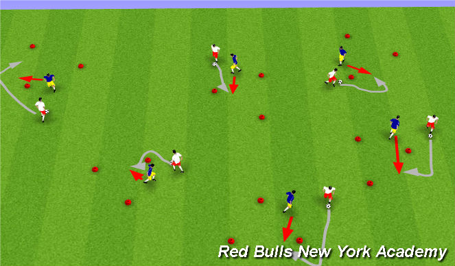 -If the Defender wins the ball, they must play the ball wide towards the blue cones.