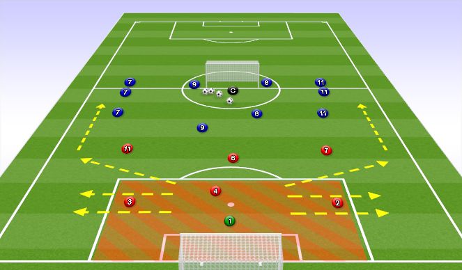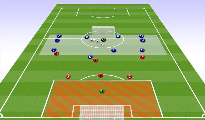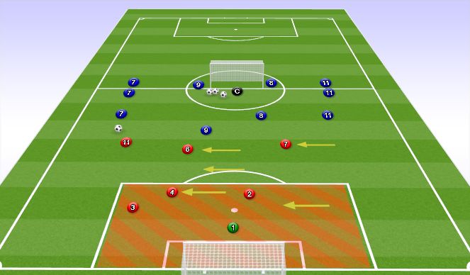 As the other team gets closer to the danger zone, near side defenders go into double coverage while the 3rd defender is watching for cross at the same time the midfielders have to add extra support.