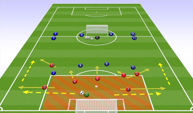 Both options 1 & 2 gets the ball to the outside and all players must shift accordingly incase the other team wins it back and be ready to transition back to defending. 4 and 6 has to remain central to be able to shift to add pressure.