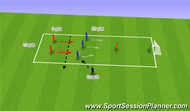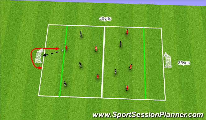 - A 40x30yd area set up with two appropriate sized goals at either end.