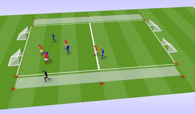 4 goals, Minimum of 7 players, enough cones to mark out area.