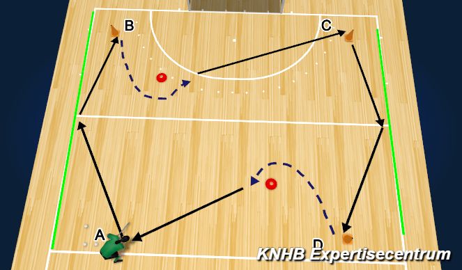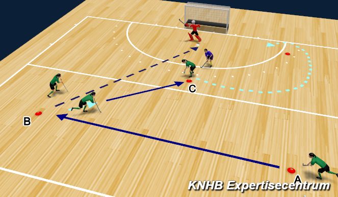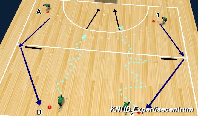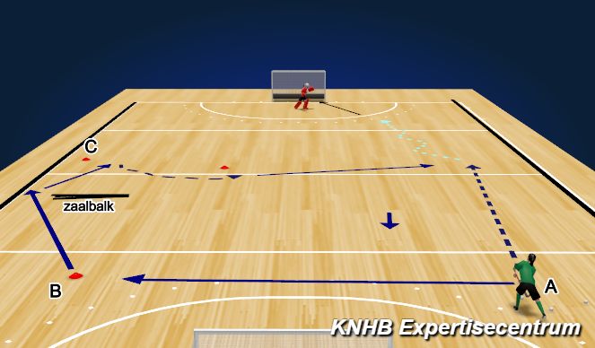 Accenten: spelen vanuit de loop en de bal moet goed via de bal in de forehand komen.