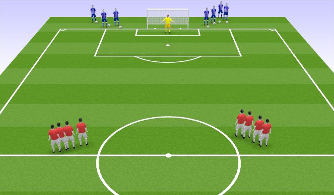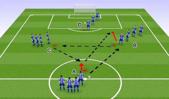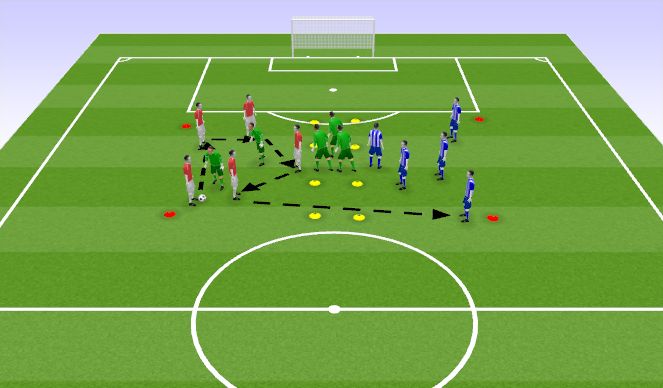 To score teams must pass to player on either side of goal and with 2 touch max player must pass to team to finish with one touch.