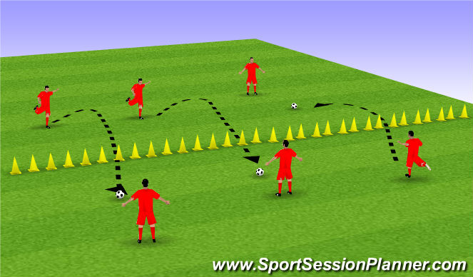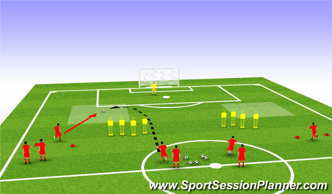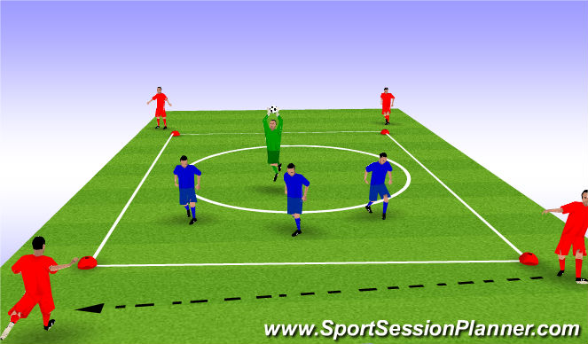 Players on the outside of the circle passes the ball around the outside of a square until one player attempts to chip the ball to a target player in the circle.