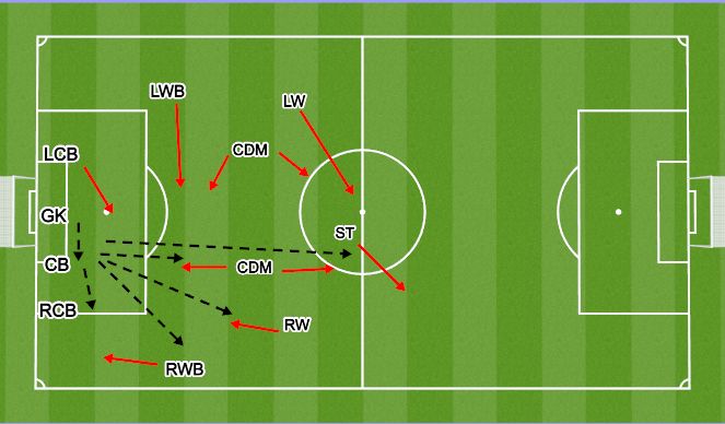• Both CDM take their positions in relation to the opponents midfielders. If they are high then CDM can go to second line for longer pass, if they are deep we can come to receive ball