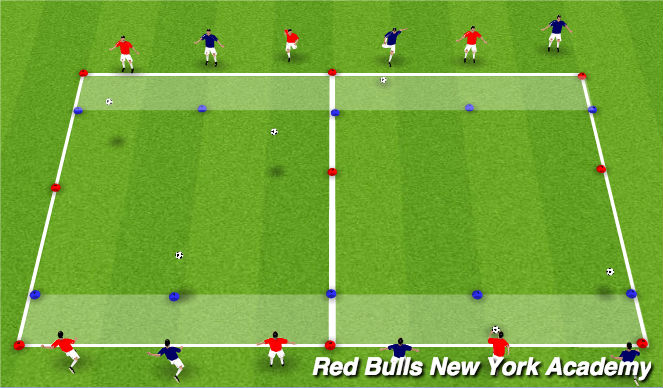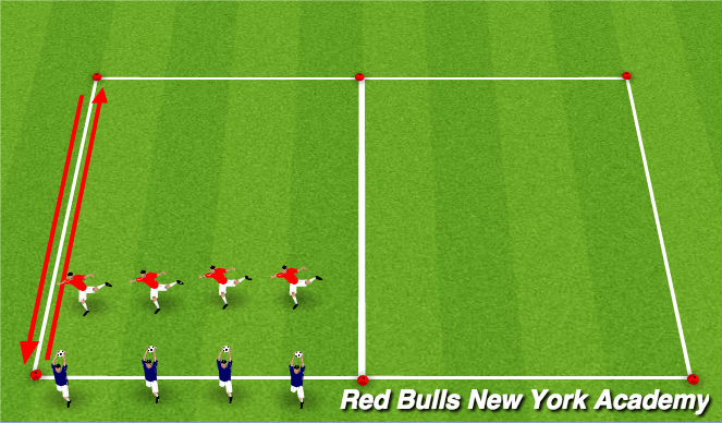- Players work on the continual repition of the lofted pass back and forth