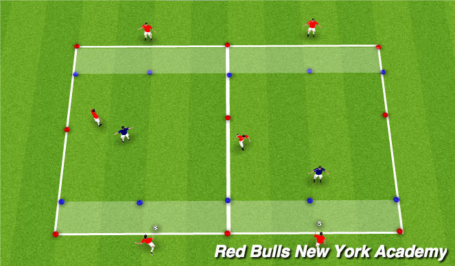 - Players are encouraged to reach the blue cones with the lofted pass