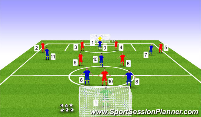 * PLAY STARTS WITH COACH WHO PASSES BALL TO RED TEAM.