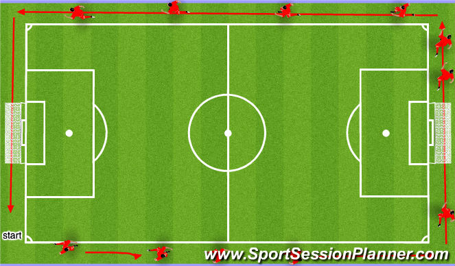 (In the diagram, pretend there is a track. If a track is not available, perform the 12 minute Cooper test around the soccer field. Record how many times players get around the field.)