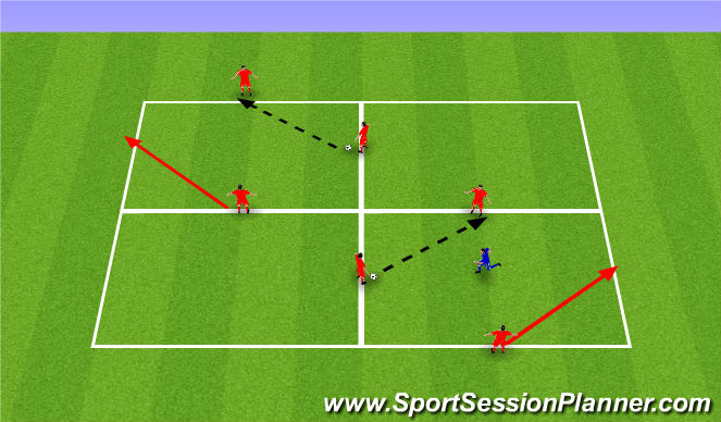 - 3v1 rondo with active switching if the defender wins the ball. Every 5 passes equal a point for the attackers