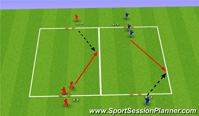 - Players are trying to play from one target to the other, 2v2 in the middle. Can pass back to the target in buildup trying to penetrate through.