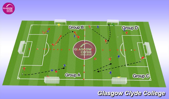group C: is to play a pass through defenders to find a teammate who will then play it back to there teammate running into the box.