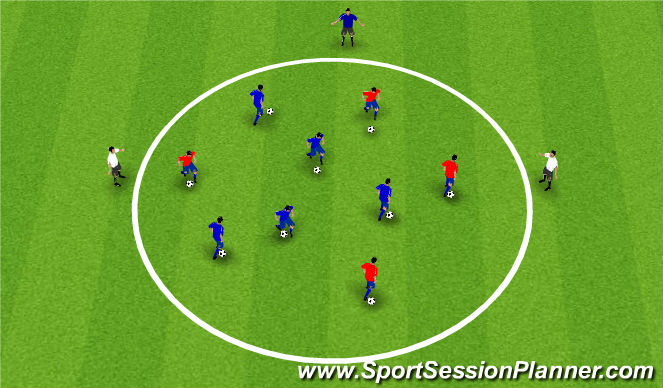 Players dribble their ball ensuring that the ball is always moving. On coaches command all players keep their own under control while attempting to kick other players balls out of the circle. If a players ball is kicked from the circle, they can return after 10 toe taps.