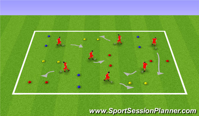 - The coach makes the players aware that they dirbble in to the centre before turning in anyway they like and head back to the same corner
