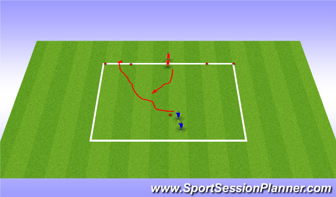 - As the ball is played out the second defender runs out to the red cone before recovering to assist the first defeder