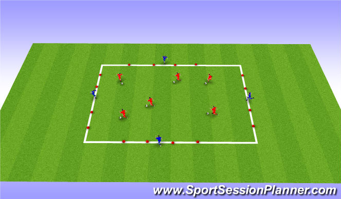 - The players in the middle dribble around the area and attempt to exit the space through one of the outside gate son any of the 4 sides of the box