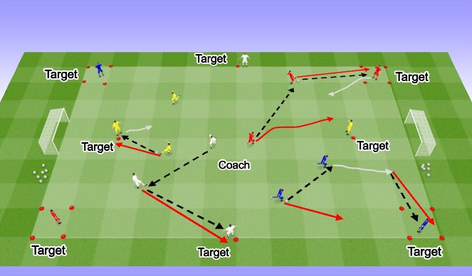 - Each team has one ball between them and pass the ball within the area before finding the target player.