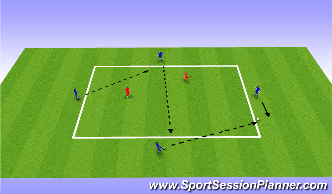 The four players outside the square have a maximun of 2 touches and must maintain possession playing only from outside of the square.