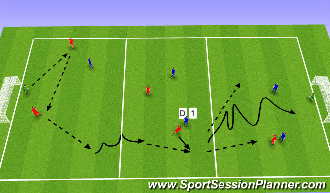 When moving into the attacking third from midfield third, the player in possession has the option of passing to the forward or attacking the goal himself by dribbling the ball.