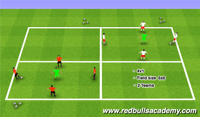 2. One defending player. Player that loses possession of the ball switches roles with the defending player.