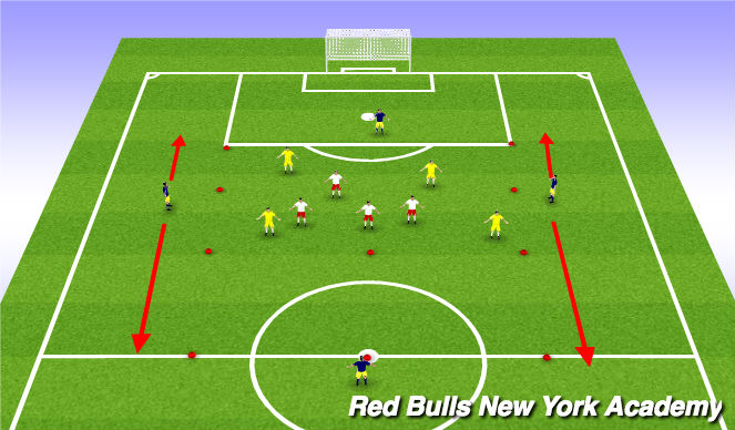 the players will pass the ball with various progressions. We will work on the technique of passing and reciving