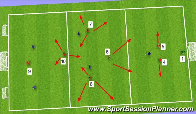 Reds to progress through units to score in any of 3 mini goals at end of zone.