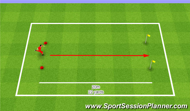 Procedure: The test involves running a single maximum sprint over 20 meters, with the time recorded. A thorough warm up should be given, including some practice starts and accelerations. Start from a stationary position, with one foot in front of the other. The front foot must be on or behind the starting line. This starting position should be held for 2 seconds prior to starting, and no rocking movements are allowed. The tester should provide hints to maximizing speed (such as keeping low, driving hard with the arms and legs) and encouraged to continue running hard past the finish line.