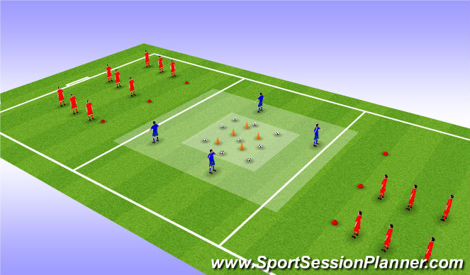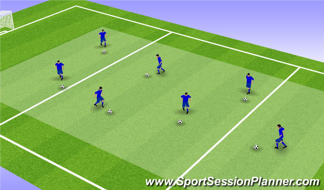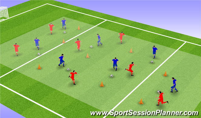 Joker (in blue) trying to knock over as many cones as possible through the pass technique