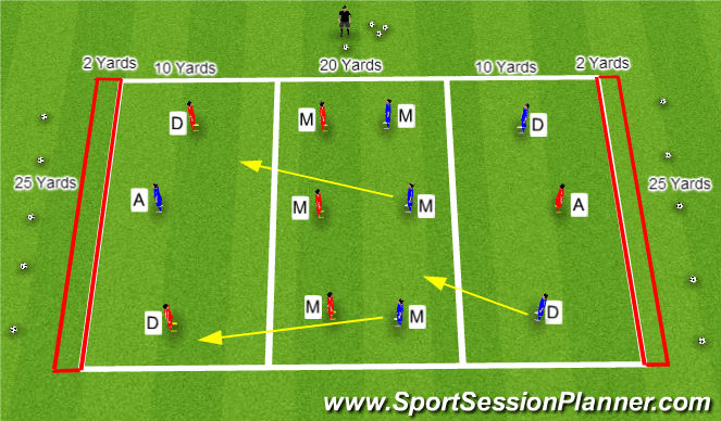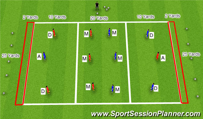 One Midfielder from the team in possession is allowed to join the attacking zone to create an overload - Must Dribble the Ball in or follow their pass!