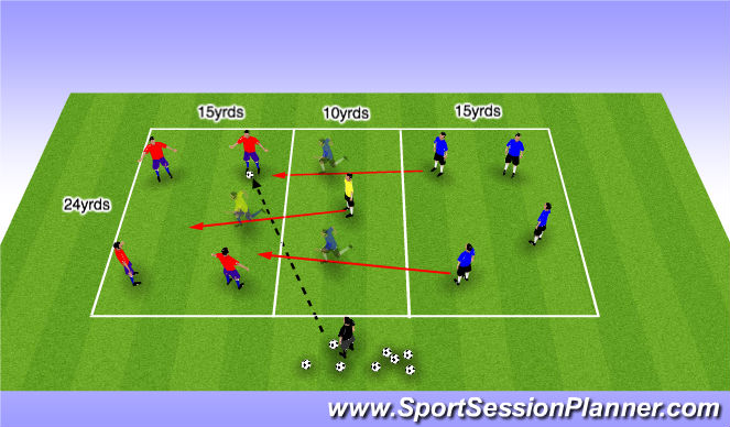 If the red team is succesful in retaining posession, linking the yellow and then making the longer pass out of pressure, they gain 1 point.