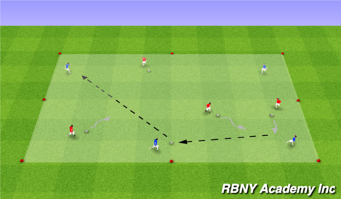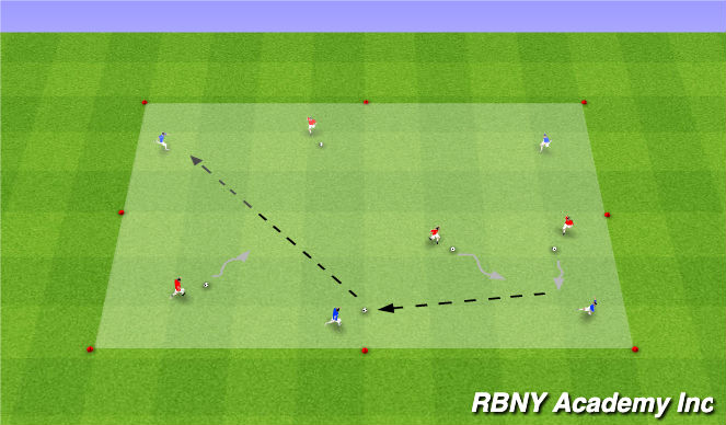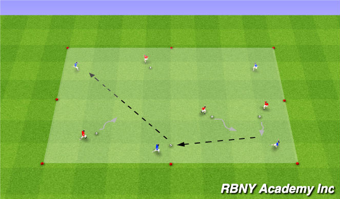 - To allow more success for the attackers, take two soccer balls away from the dribblers, and they must now work together to disrupt possession and/or move the ball around to put themselves in a position to tag the player with the ball.