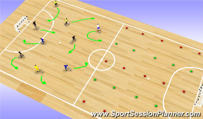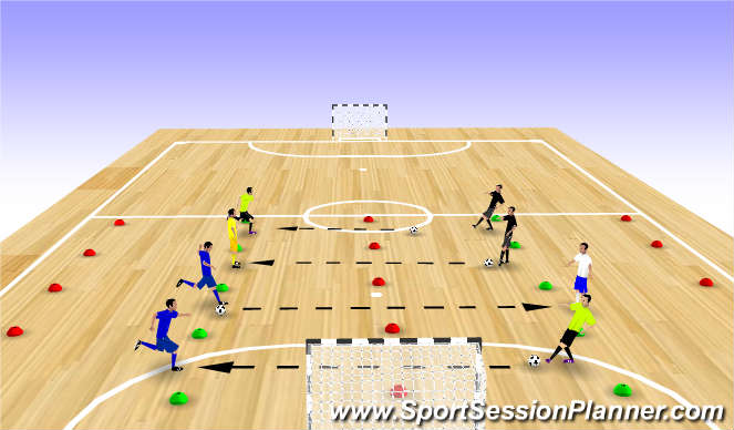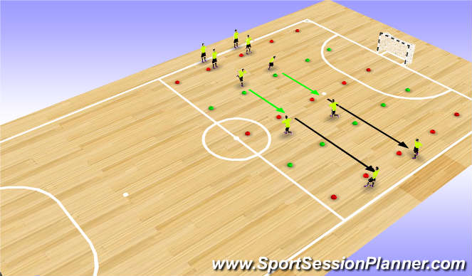 *Coaching Points - Control over speed, head up, dribbling to find open space, touches with appropriate surfaces of the foot.