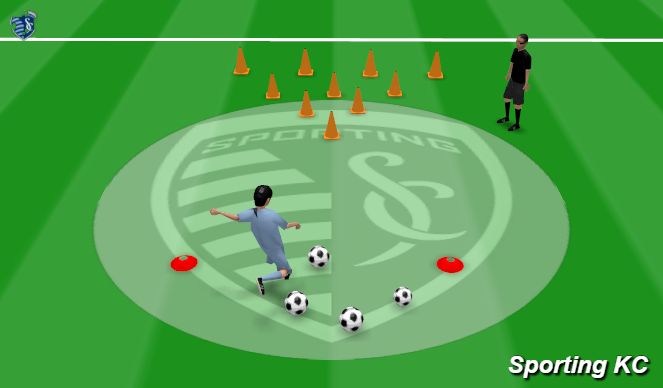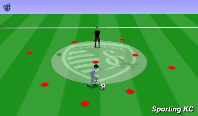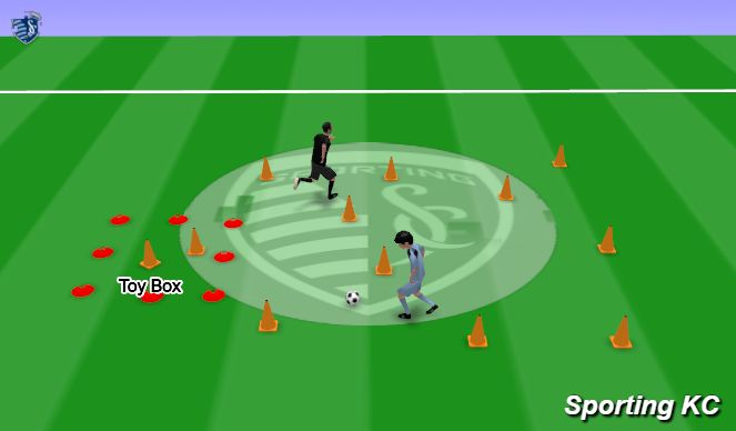 Objective- Your athlete will be responsible to dribble their ball around the "toys" while picking them up and placing them one by one in the "toy box". The parent, guardian, or sibling are "Blue" and are responsible for grabbing the toys out of the toy box and putting them back out in the play area. Play till all the toys are picked up and in the toy box.Storyline- Blue the crazy Sporting dog made a mess and got all of his toys out of the toy box. You need to help pick up all of his toys and clean up the mess before Blue makes another mess. You need to pick up one toy at a time and take it to the toy box, but it only counts if you dribble your ball with you. Make sure to use your pinky toe touches to dribble your ball around the toys. You better be quick because Blue is going crazy and will make another mess!