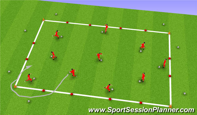 Physical The area is large for a dribbling session usually, however, this will create more opportunities for 1 vs 1 situations. Pitch size can also be made smaller if needs be to create tighter spaces on the pitch for players to practice their dribbling skills even further. |