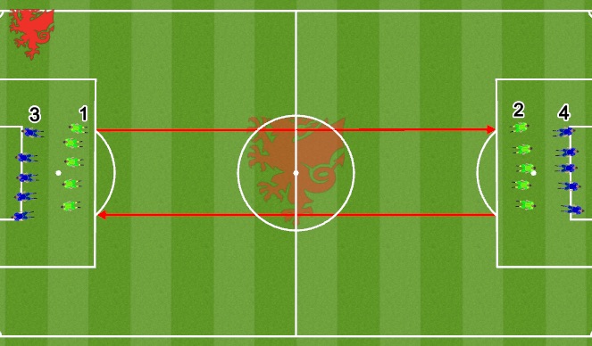 Start at a corner flag and at top speed sprint diagonally to the opposing corner flag. Walk across the goal line to the opposite corner before running to the adjacent flag. Repeat three times to complete the cycle and do twice to complete the workout.