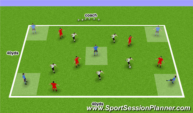 3. If Red wins possession of the ball they use GREY to maintain possession while expanding their position as target players in zones/boxes shown.