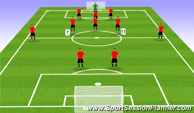 Try to link play from and to the Wing Backs and Forwards.