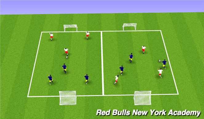 Play 3v3/4v4 using age appropriate goals (no GK's) in a 20x30/25x35 yard area.
