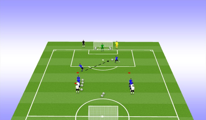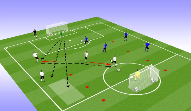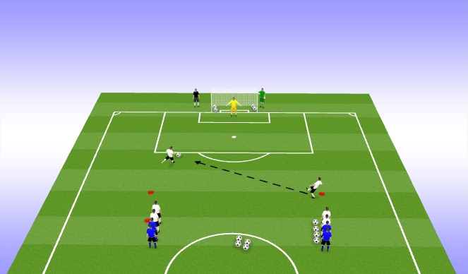左方傳球到右方球員射門,右方傳球到左方球員射門
