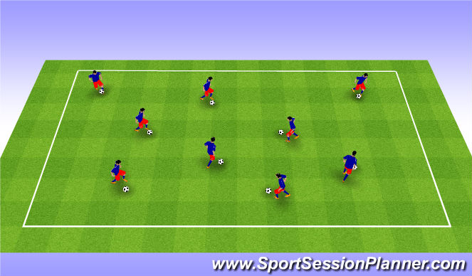 Dribbling around the area, using different parts of their feet, Can they dribble through a pair? After a skill or turn can they accelerate away? How does space apear?