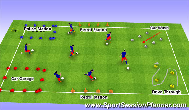 5) Choose a player to become a police officer, they can arrest other drivers,once arrested they must go to jail and pass the ball through the gate with both feet. Then they can leave and carry on driving.