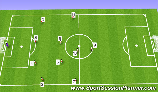 #7 and #11 - The right & left forwards need to keep the field as wide & long as possible. Try to stay in a wide position to receive the ball to feet, but also receive a through ball behind the opposition right/left backs. The wide players are not only expected to get down the line & cross but to also come inside to join attacks in the box.