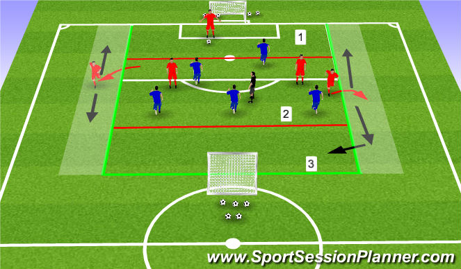 2-in possession team must have 2 players in the shaded area who can use the full wide area up & down.