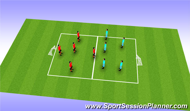 Players begin touch the ball as toe-toe touches, at command they accelerate to the foot work area for ball mastering skills 10 sec, accelerate again to the dribbling zone, after they fiish this zone they will accelerate again to the next foot work area for plyometric ball work 10 secs, and pass the ball back for the next group.